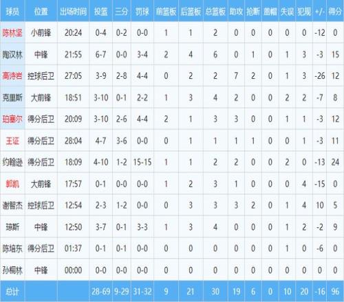 本场比赛,无论在外援还是国内球员的对比上,山东队均处于劣势。约翰逊得到山东队最高分24分,但10投只有4中,有15分来自罚球。陶汉林发挥出老将作用,得到15分6篮板。珀塞尔10中3,得到12分。高诗岩9中3,得到12分,正负值低至负26。王证三分球6中3,得到11分,且正负值只有负3,成为山东队为数不多的亮点之一。值得一提的是,山东队全队96分钟,有三成(31分)来自罚球,进攻流畅性可见一斑。