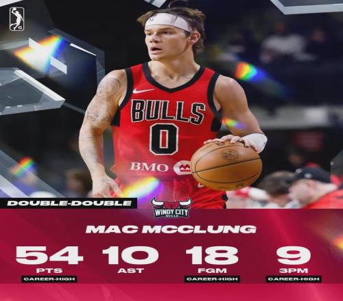 芝加哥公牛官方更推:双向合同球员马克-麦克朗上周在发展联盟场均轰下38.3分12.3助攻,荣膺发展联盟周最佳球员。不仅如此,整个2月份,麦克朗在发展联盟场均砍下33分2.4篮板4助攻2抢断,荣膺发展联盟月最佳球员。