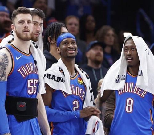 雷霆队已经锁定季后赛名额,前往客场挑战篮网队,篮网队毫无招架之力半场仅得24分,雷霆队稳扎稳打轻轻松松取得30+领先优势,比赛早早失去悬念。最终,雷霆队以121-92大胜篮网队。雷霆队制造一场29分惨案,豪取10连胜,这是联盟现存最长连胜纪录。此役过后,雷霆队以55胜15负稳居西部第1位,领先西部第2的马刺队(51胜18负)3.5个胜场。马刺队过去21场比赛取得了19胜2负的骄人战绩,可他们还是追不上残阵雷霆队,这才是卫冕冠军的可怕之处:在卫冕冠军倒下之前,他们永远是冠军!