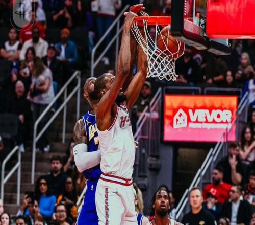 半场比赛战罢,湖人67-55领先火箭12分。下半场比赛开始,易边再战,杜兰特的侧翼三分开火洞穿篮心,揭开第三节比赛序幕,汤普森空切篮下,势大力沉的双手重锤暴扣点燃全场,申京欧洲步抛投斩落两分,杜兰特极限后仰再次命中,里夫斯溜底线反身上篮制造犯规,站上罚球线两罚都有,小史密斯底角埋伏,三分线外搭弓射箭百步穿杨,来到第三节中段,场上局面有所变数,湖人进攻效率开始下滑,火箭则抓住机会全民皆兵,打出一波反击攻势追平比分,艾顿的空接暴扣帮助湖人稍稍止血,东契奇慢三步上篮也擦板得分,三节比赛打完,火箭92-89反超湖人3分。