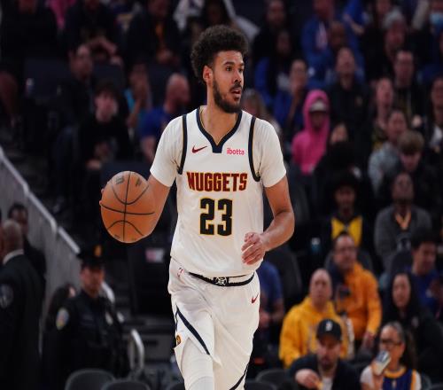 上半场,掘金两位首发卡梅隆·约翰逊和布劳恩都有不错发挥,其中卡梅隆·约翰逊投篮6中5,三分球2中2,罚球4中3,拿到15分2篮板1助攻的数据;布劳恩投篮5中4,三分球3中2,罚球4中4,拿到14分4篮板3助攻1抢断的数据。