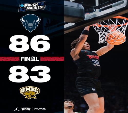 体育播报3月18日宣 NCAA“疯狂三月”外卡赛,霍华德大学86-83击败马里兰大学巴尔的摩县分校,晋级64强。
