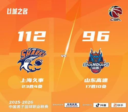 第四节,李添荣底角三分命中,陶汉林上篮得手回敬两分,王哲林中距离跳投命中,古德温、李添荣先后命中三分。暂停回来,李添荣手感火热连获5分,将分差重新扩大至两位数,王哲林强突上篮打进,古德温篮下强硬2+1打成,张镇麟内线连获4分。全场比赛结束,上海112比96山东,取得常规赛八连胜。目前,上海队以23胜4负的战绩位列CBA积分榜首位。